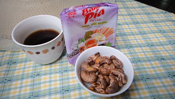 午後咖啡搭配腰果與榴槤餅,人間最美的享受.....